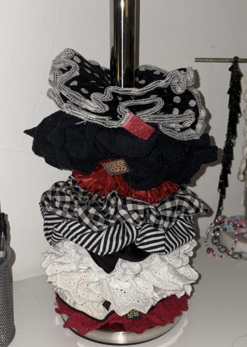 Char: “I only really buy Good Squish.. The sustainability factor is important, and since scrunchies require little fabric, many brands use leftover materials. Plus, I often shop through second-hand platforms like Vinted or Depop.”