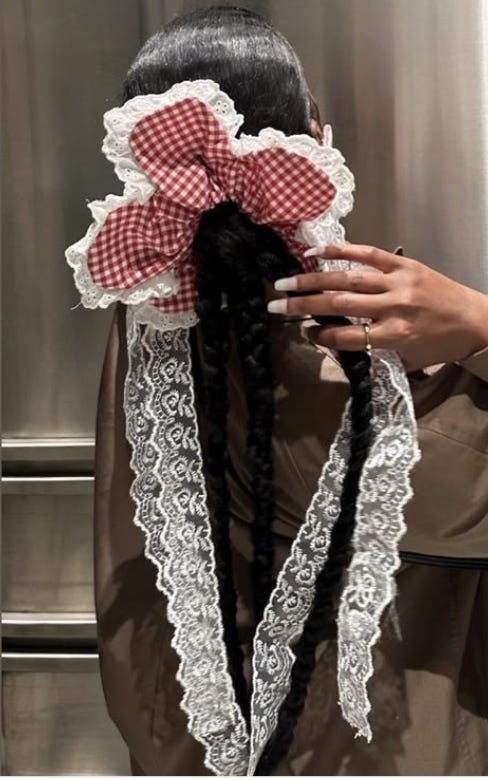 Stacking scrunchies is a great solution for layering and adding dimensionality to thinner hair. For those who are budget-conscious, some profiles on Vinted or Depop occasionally sell in a bundle.