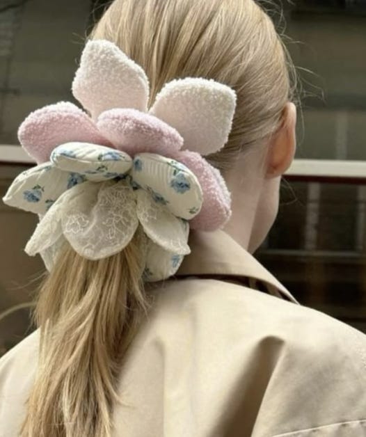 The Flower Scrunchie. A great inspo image to show to a tailor, or to replicate at home.
